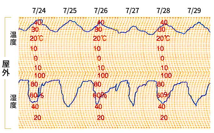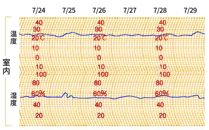 屋外が酷暑で多湿でも、屋内はひんやりとした新鮮空気に満ちており湿度も安定しています。