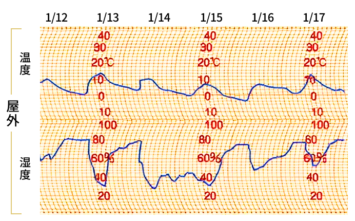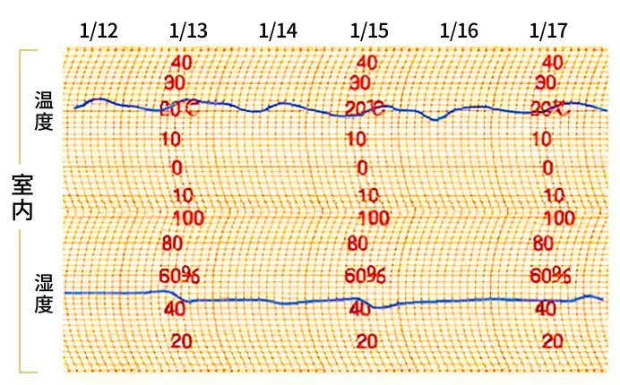 どんなに屋外が寒くても、屋内はぽかぽか。快適な温度・湿度を保っていることがわかります。