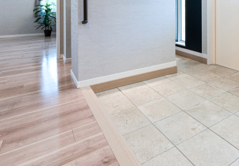 また、高さを抑えた上り框・地熱基礎により基礎高を低く抑えることができ、外部との段差を少なくすることができます。