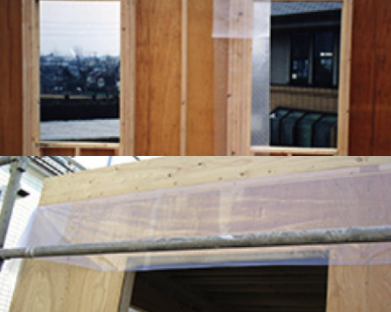 2x6(ツーバイシックス)工法で間仕切り壁と外壁との交差部にはあらかじめ防湿気密シートを先行して張り付けをします。大工の手間が増えますし、きちんと施工するためには慣れと技術が必要です。ウェルダンは固定の職人の直接施工だからこれらを実践できるのです。