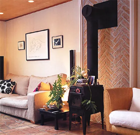 わが家の主役は、テラコッタの床。ウェルダンの蓄熱式温水床暖房でとても気持ちがいいんですよ。飼っている猫がだらんと伸びている姿はまるで岩盤浴みたい(笑)。そんなベージュ色の床に合わせてインテリアはモノトーンでまとめています。6年前には、「薪ストーブ」を購入。クリスマスなどのイベント時に人を招いて、このストーブに火を入れるととても盛り上がるんですよ。ストーブを囲みながら、家族や仲間たちと団欒の時を過ごしてます。