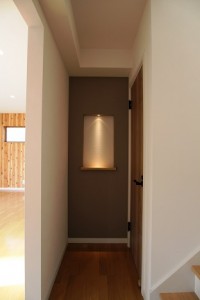 玄関を入って見える廊下の突当りの壁にはニッチを計画し、自然と動線を誘導しています。