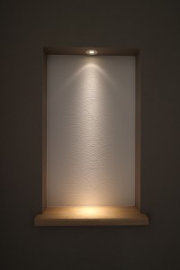 ニッチのある壁とニッチ内のクロスを濃淡を変える事で演出し、コテムラが感じられる白いクロスはダウンライトに照らされる事でより雰囲気が感じられ、とても素敵でした。