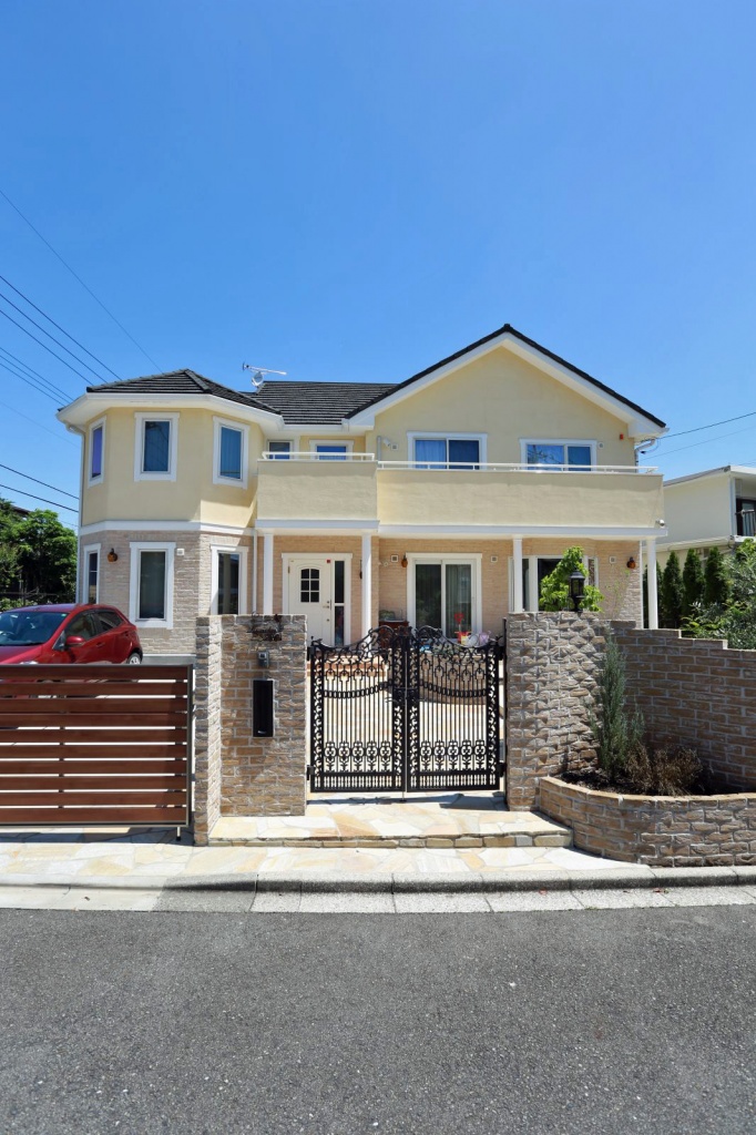 多摩市のK邸は、閑静な住宅街の中で、ひときわ大きな敷地にたたずんでいます。 外観は角地のローケーションを活かし、建物角に塔屋を設け、シンボルとなるよう計画しました。1階はベルギーレンガのシトロブルーメ色という、淡い色調のものを採用。2階には超弾性スタッコフレックスのSunshineという薄黄色とし、大きな建物にも関わらず威圧感の少ない、明るい雰囲気となっています。 ご近所の方からは「多摩のホワイトハウス」と呼ばれているそうです。 内部は、キッチンや洗面、トイレ手洗いなどはアメリカMellirat社を採用、食器洗い乾燥機やIH、レンジフードといった設備機器は、後々のメンテナンスを考慮し日本製を選択しました。 インテリア全体としてはアメリカンモダンスタイルで、シンプルですっきりとしながらも、木の温もりをふんだんに活かし、無機質すぎないテイストとしました。 また収納にとてもこだわられ、主寝室のウォークインクローゼット内はご主人用と奥様用と内部で別々のゾーンとしたっぷりスペースを確保したり、帰宅後に収納スペースを通り洗面室に向かう動線を取るなど生活スタイルを入念にお打合せさせて頂きました。 お施主様がお住まいになられてからのことですが、ドラマのロケハンでたまたま通りかかった撮影スタッフの目に留まり、飛込みにて撮影で使用したいとの話しとなりました。K様も快諾され、後日女優の高岡早紀さんや、子役の鈴木福君が来られ外観だけでなく、建物内の食事シーンまで撮影に使用され、オンエアされました。 お施主様も「素晴らしい家を建てて頂きありがとうございました」とわざわざお礼のお言葉を頂戴し、大変光栄に思いました。