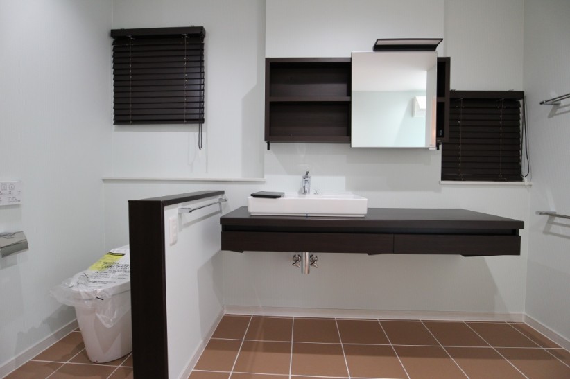 室内の床は全てタイル仕上げとなっており、靴を脱がないスタイルとなっています。この背景には、施主様の愛犬に対する強い想いがあったんです。ワンちゃんを飼っていらっしゃる方で、「フローリングだと犬が滑って歩きづらそうだな」と心配されている方も多いのではないのでしょうか。専用のカーペットを敷いたり、いろいろ対策をされている方もいらっしゃると思いますが実は床をタイル貼りにするという方法があるんです。タイルだと掃除もしやすい上、滑りにくい材質のためワンちゃんを飼っている環境では最適な床材となっています。大切なペットを最優先に考えてこだわったお家作り、すごく素敵ですよね!是非、大切なペットの為に一度考えてみてはいかがでしょうか。こちらのお施主様は土地の選定から当社で担当させて頂きました。土地の選定でお困りの方がいらっしゃいましたら、お気軽に当社までお声掛け下さい。